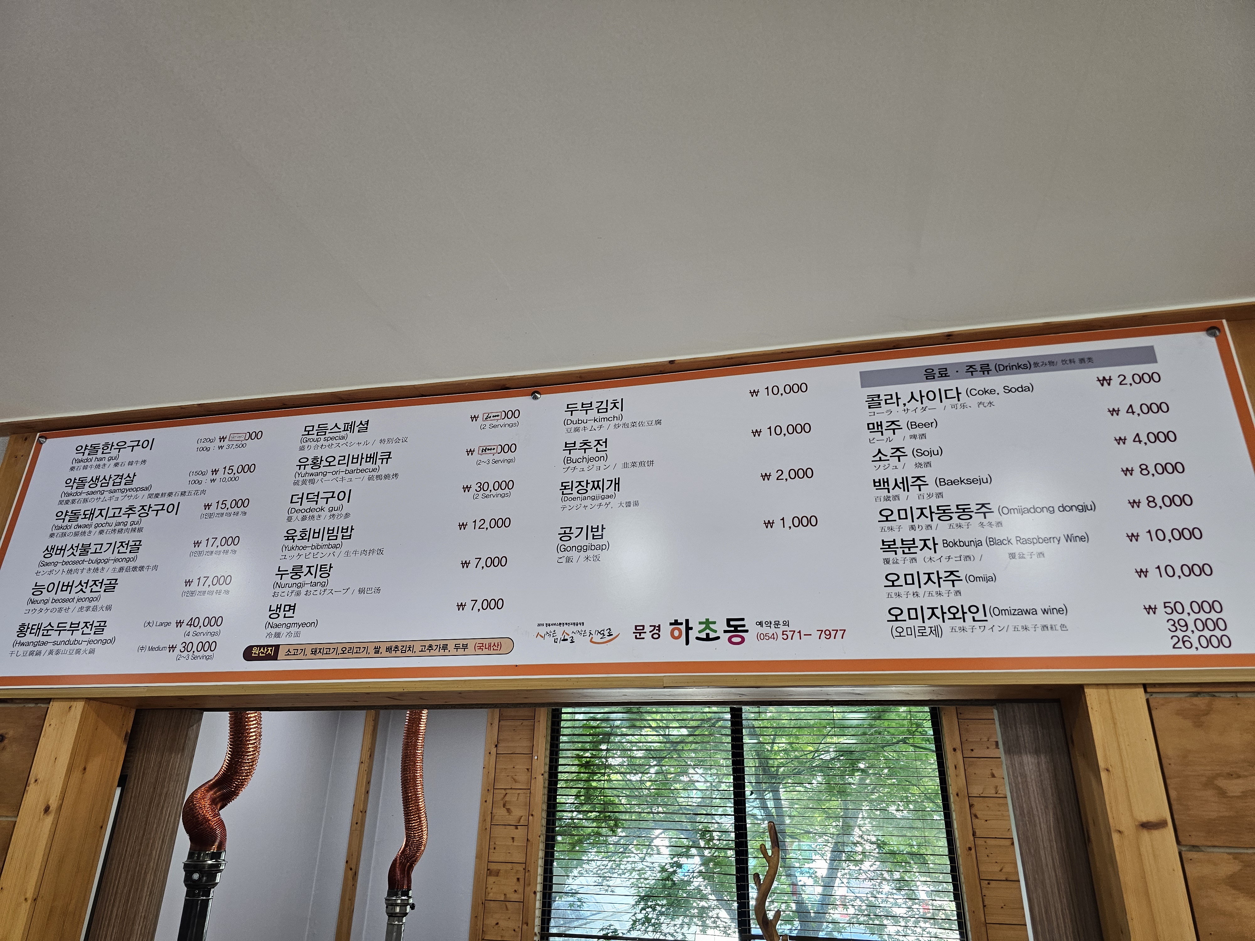 주요 메뉴는 약돌한우구이, 약돌 생삼겹살,