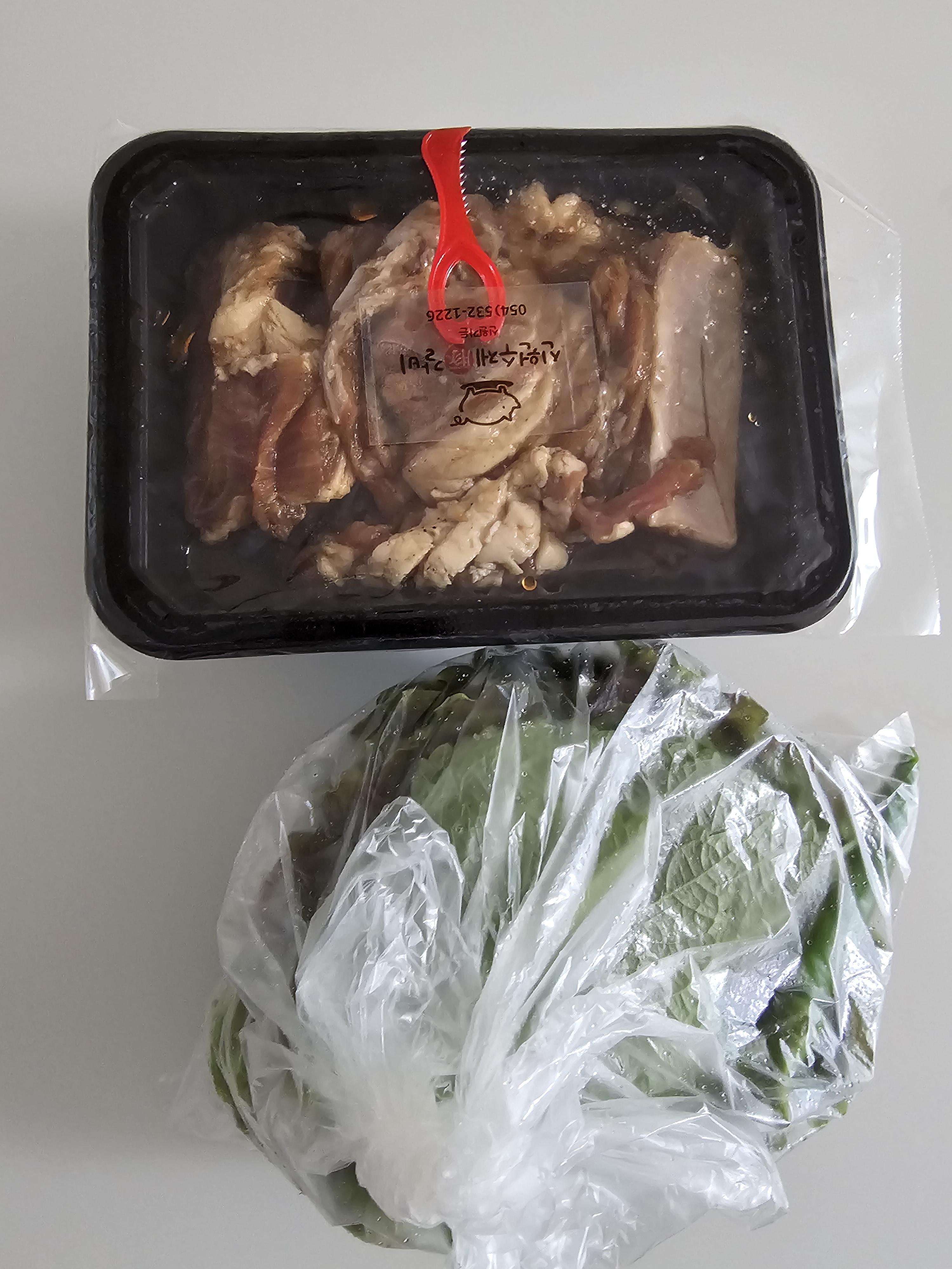 포장을 하니까 쌈(넉넉하게)과 마늘,