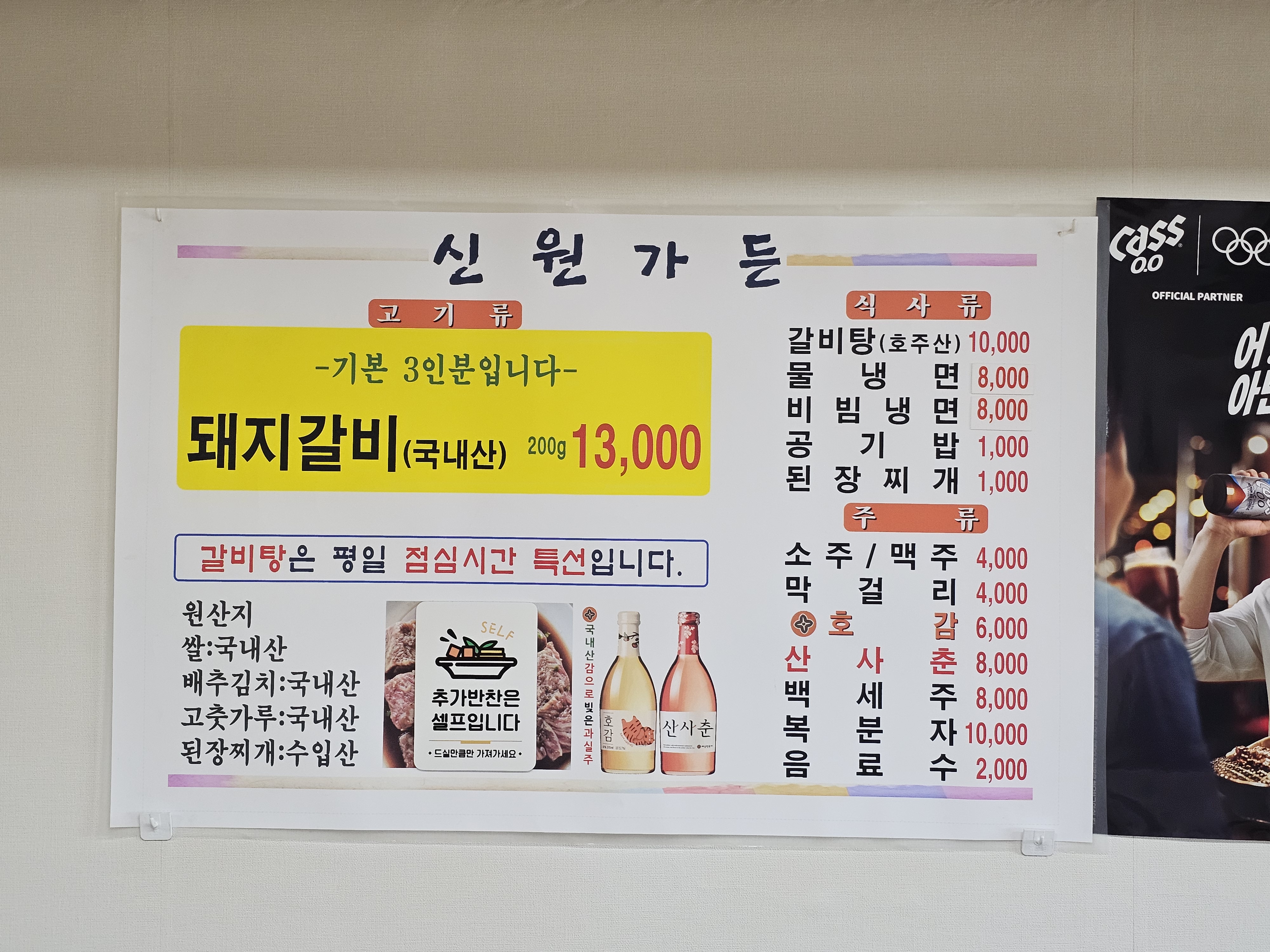 신원가든 메뉴입니다.
