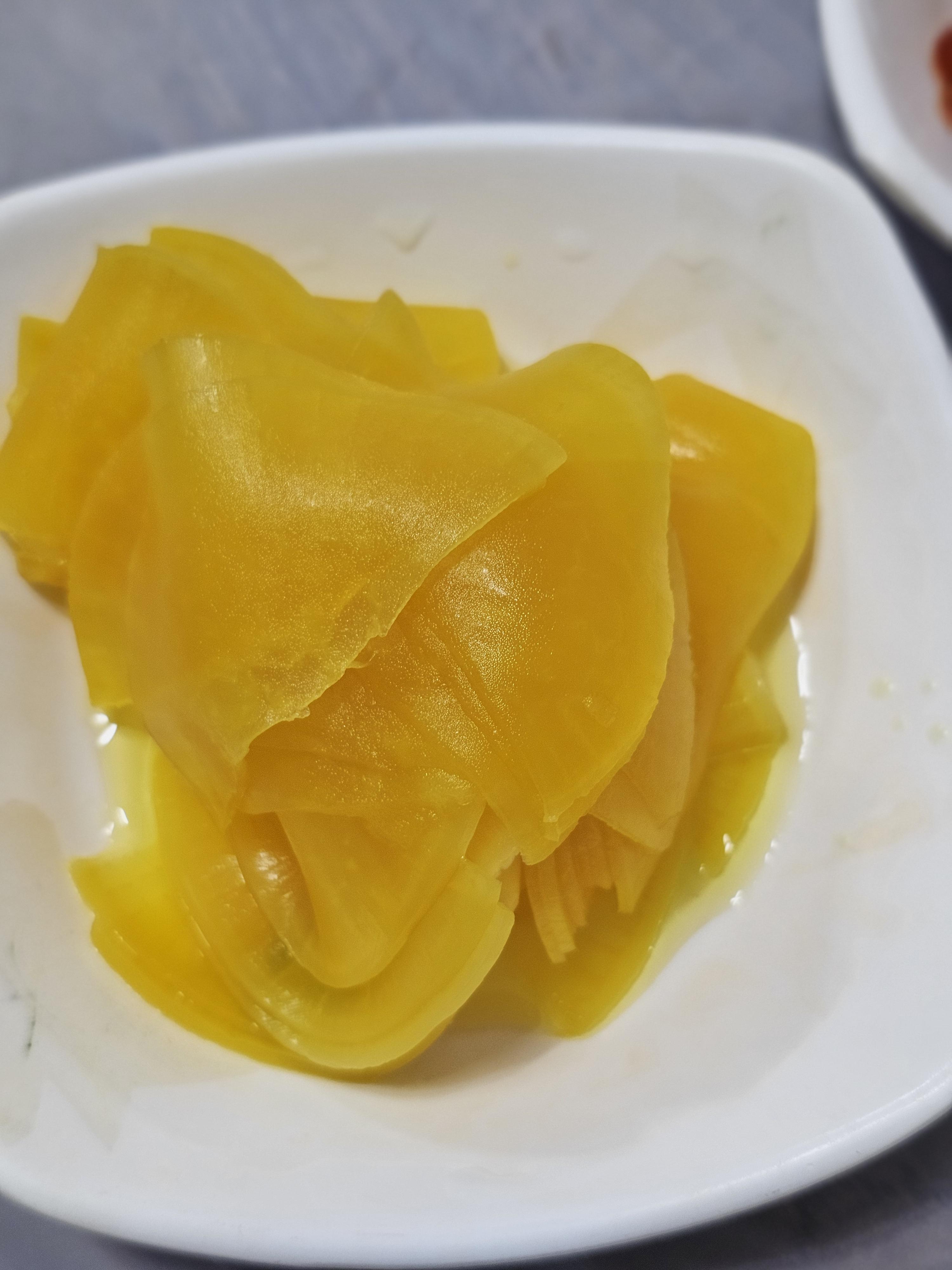 단출한 김치와 단무지, 오징어젓갈입니다.
