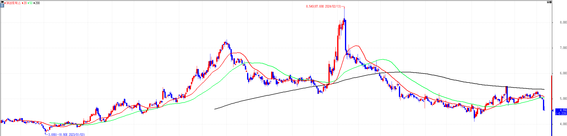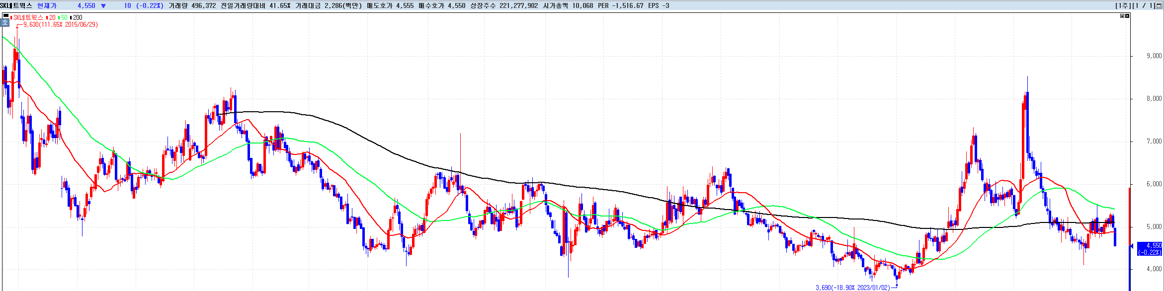 일봉을 보자니, 조금 안타깝게도