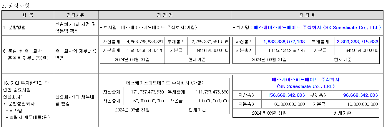 2. sk네트웍스로부터 sk스피드메이트 물적분할
