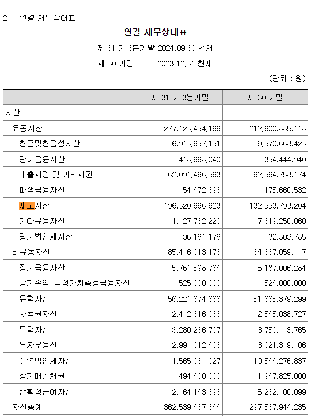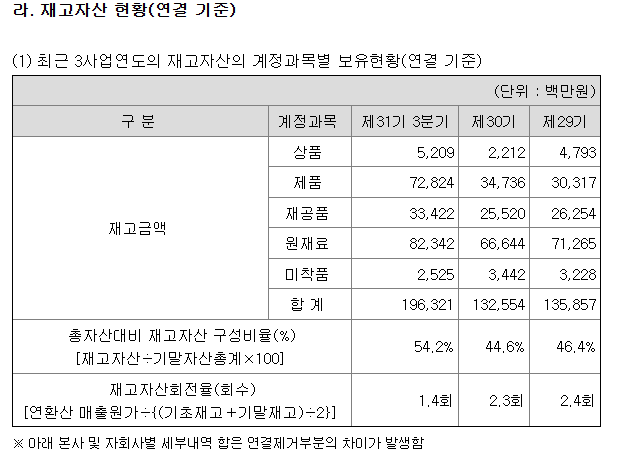 주석을 보면 당분기 자산대비 재고자산 구성비율이 50%가