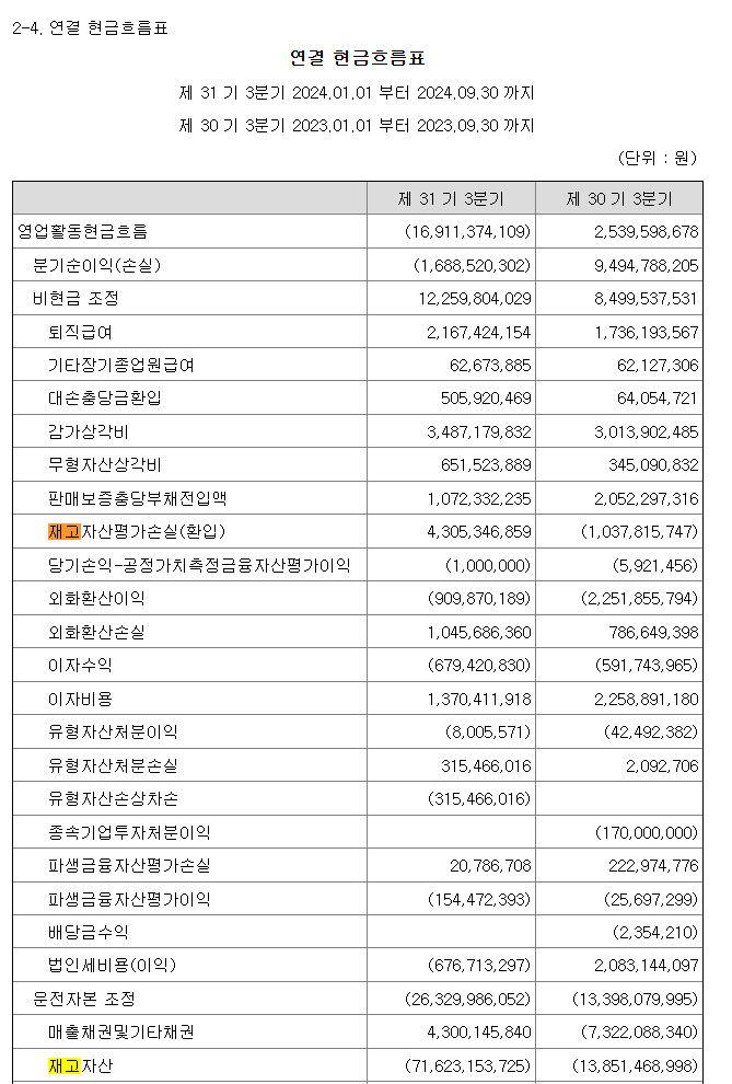 현금흐름표를 보면 영업활동 현금흐름에서