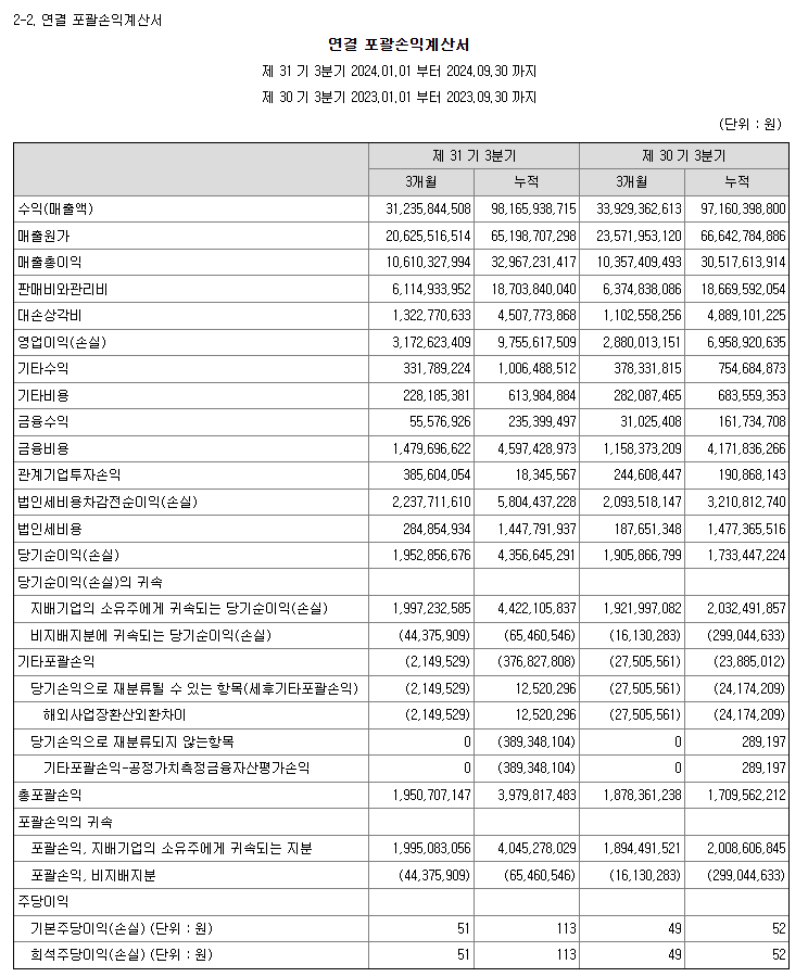 적자를 보고 있으면서도 (-30억 원의 적자)