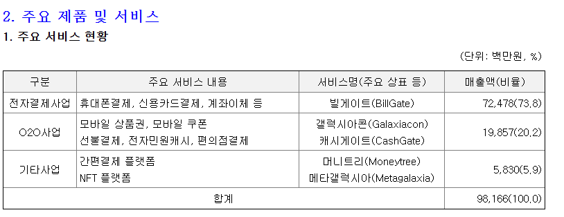 기존에는 휴대폰 결제 서비스를 주력으로 영위하는 사업체였습니다만,