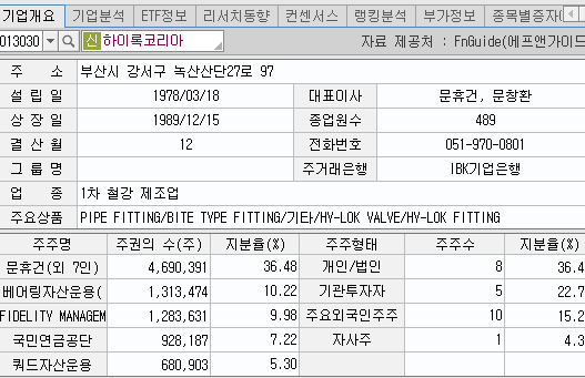현재 대장주는 화성밸브 입니다만, 하이록 코리아의 주력 상품들은 단지 실적과