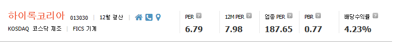 PER, PBR이 상대적으로 낮은 수치입니다.