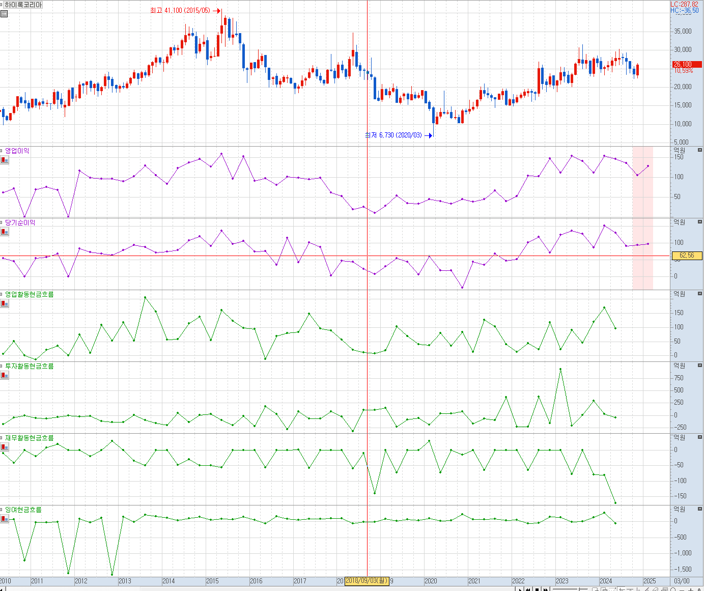 영업이익, 당기순이익, FCF 모두 양호한 흐름임을 재무차트를 통해 직관적으로