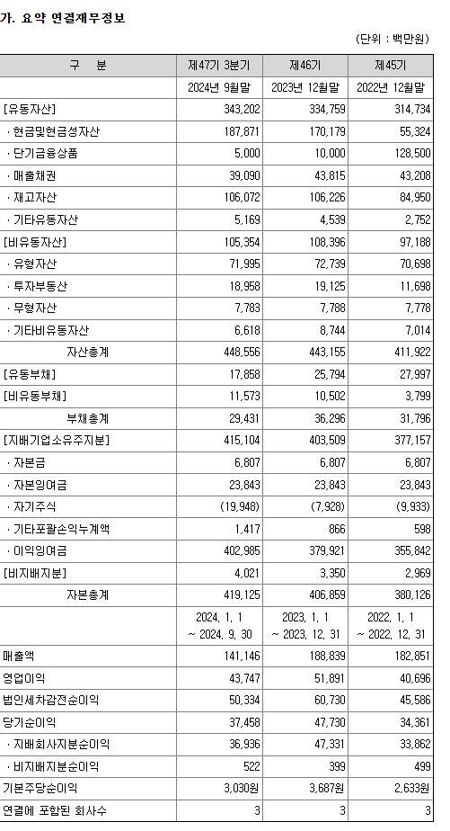2024년 3분기 하이록코리아 요약재무제표입니다.