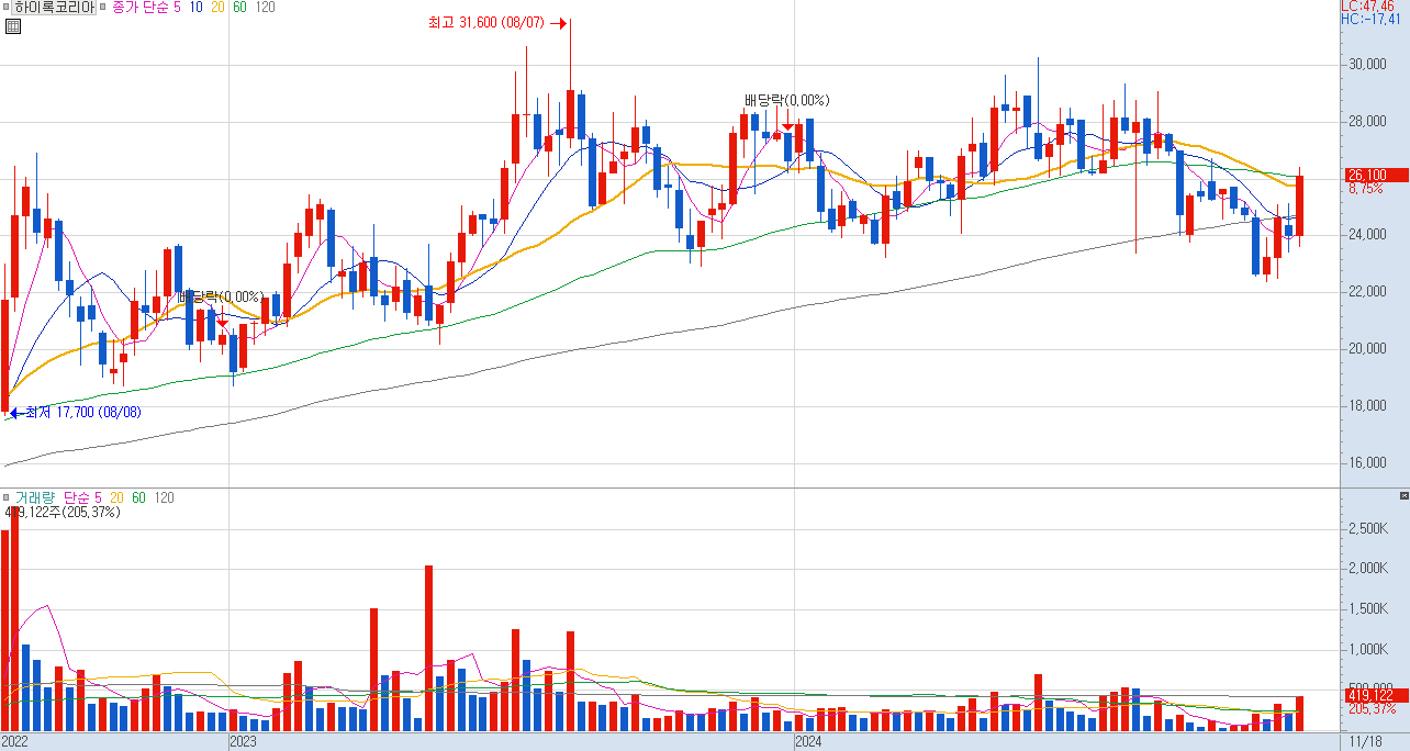 오늘의 종목은 하이록코리아입니다.