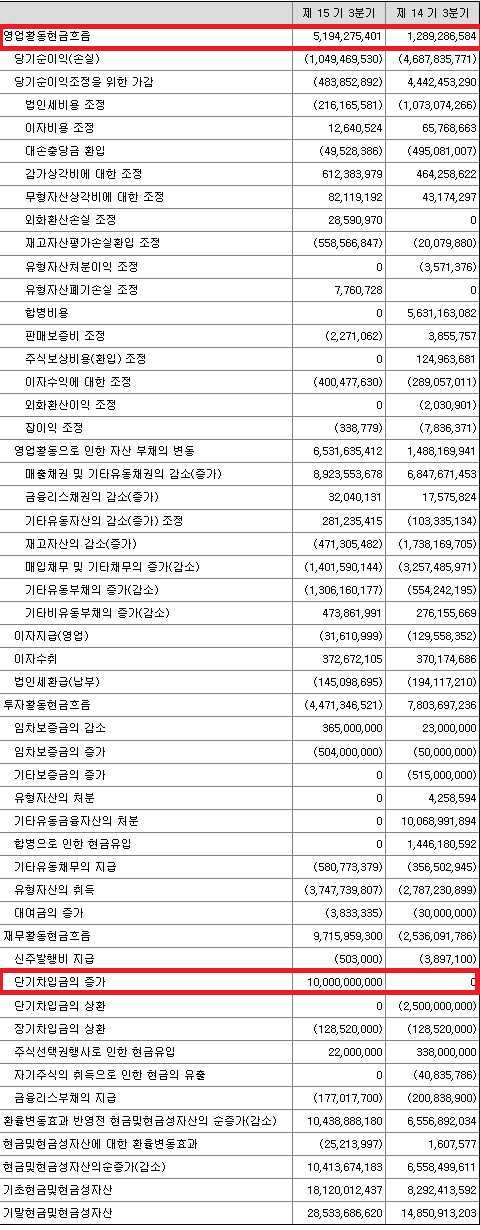 높은 판관비와 실적저조로 단기차입금이 발생하는 등
