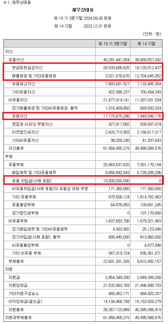 엑스게이트 3Q24의 재무상태표를 먼저 살펴볼게요