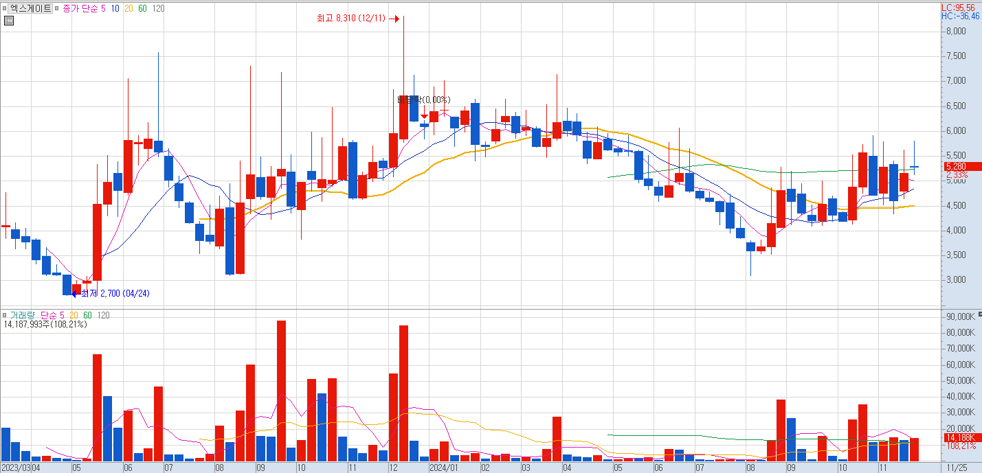 엑스게이트 주가가 시간외 매매에서 급등했다.28일 한국거래소에 따르면 전일 시간외 매매에서 엑스게이트 주가는 종가보다 2.86% 오른 5400원에 거래를 마쳤다. 엑스게이트의 시간외 거래량은 31