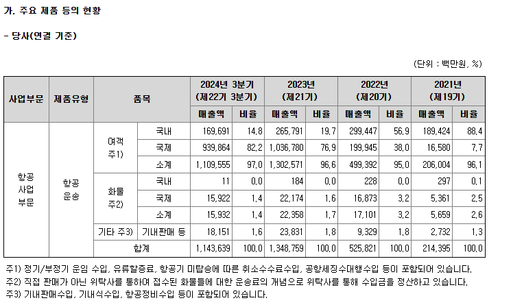 주로 사람을 실어 나르는 여객을 주 사업으로 영위한 다는 사실을 수치로 확인할 수 있습니다.