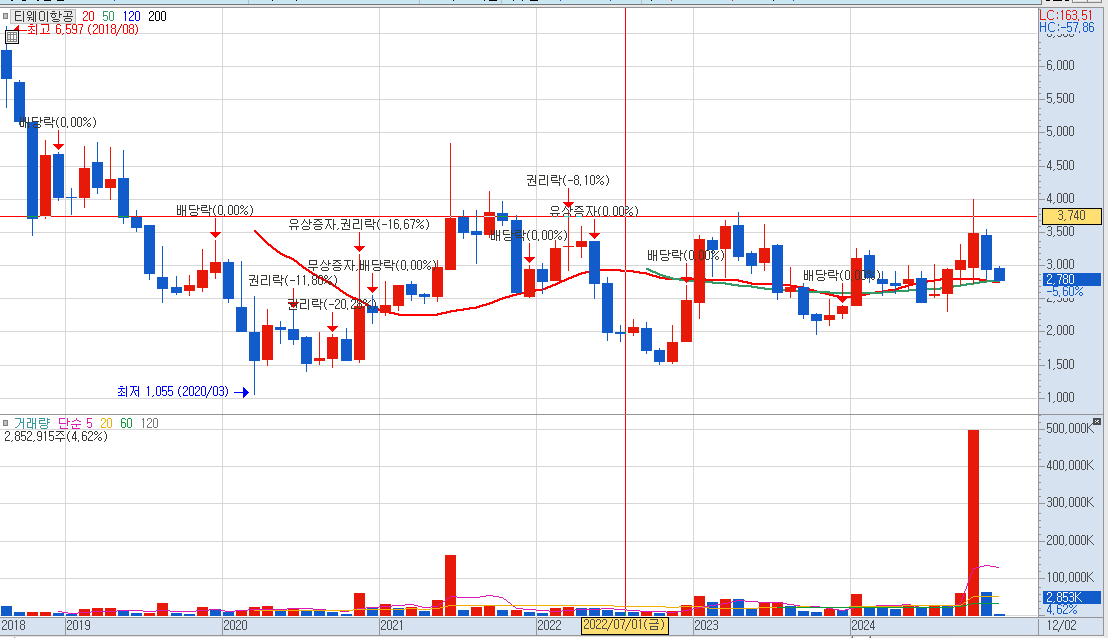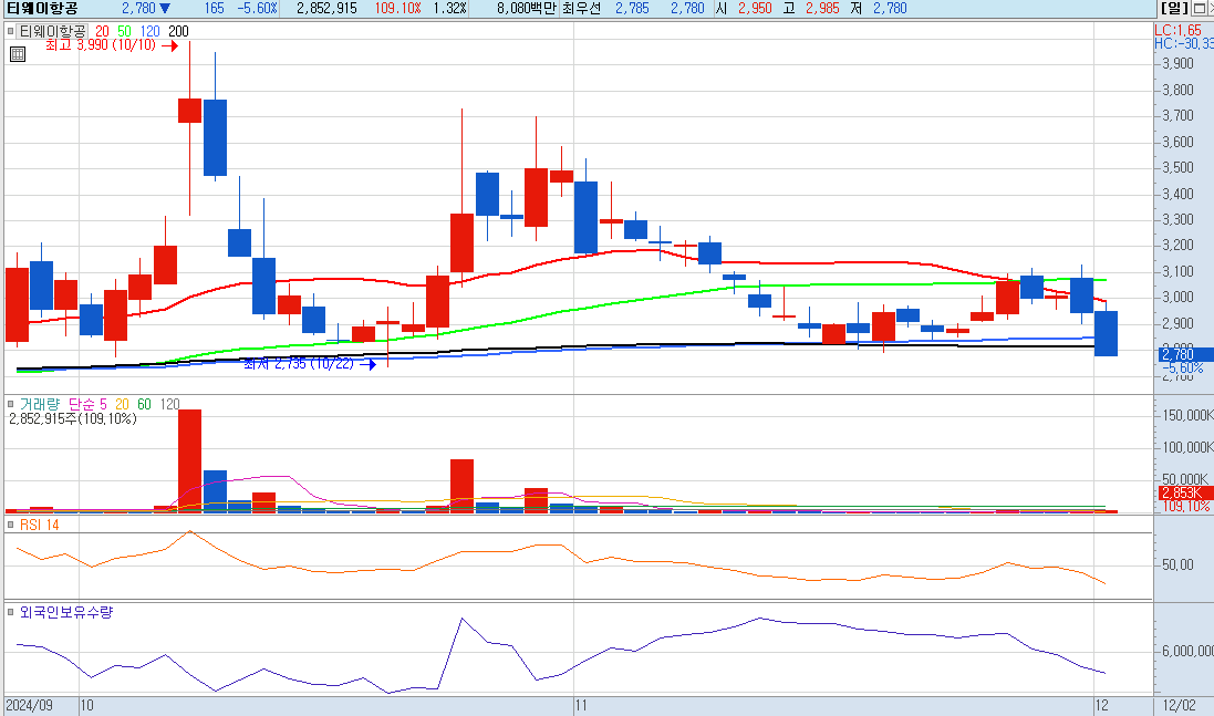 이번에 분석해 볼 종목은 티웨이항공입니다