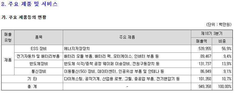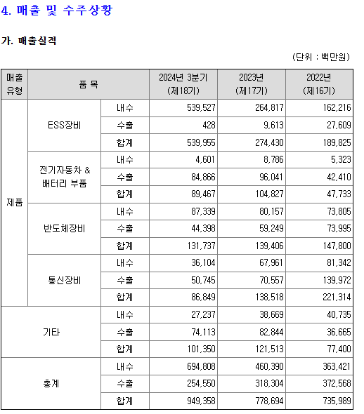 가장 큰 매출인 내수 ESS장비입니다.