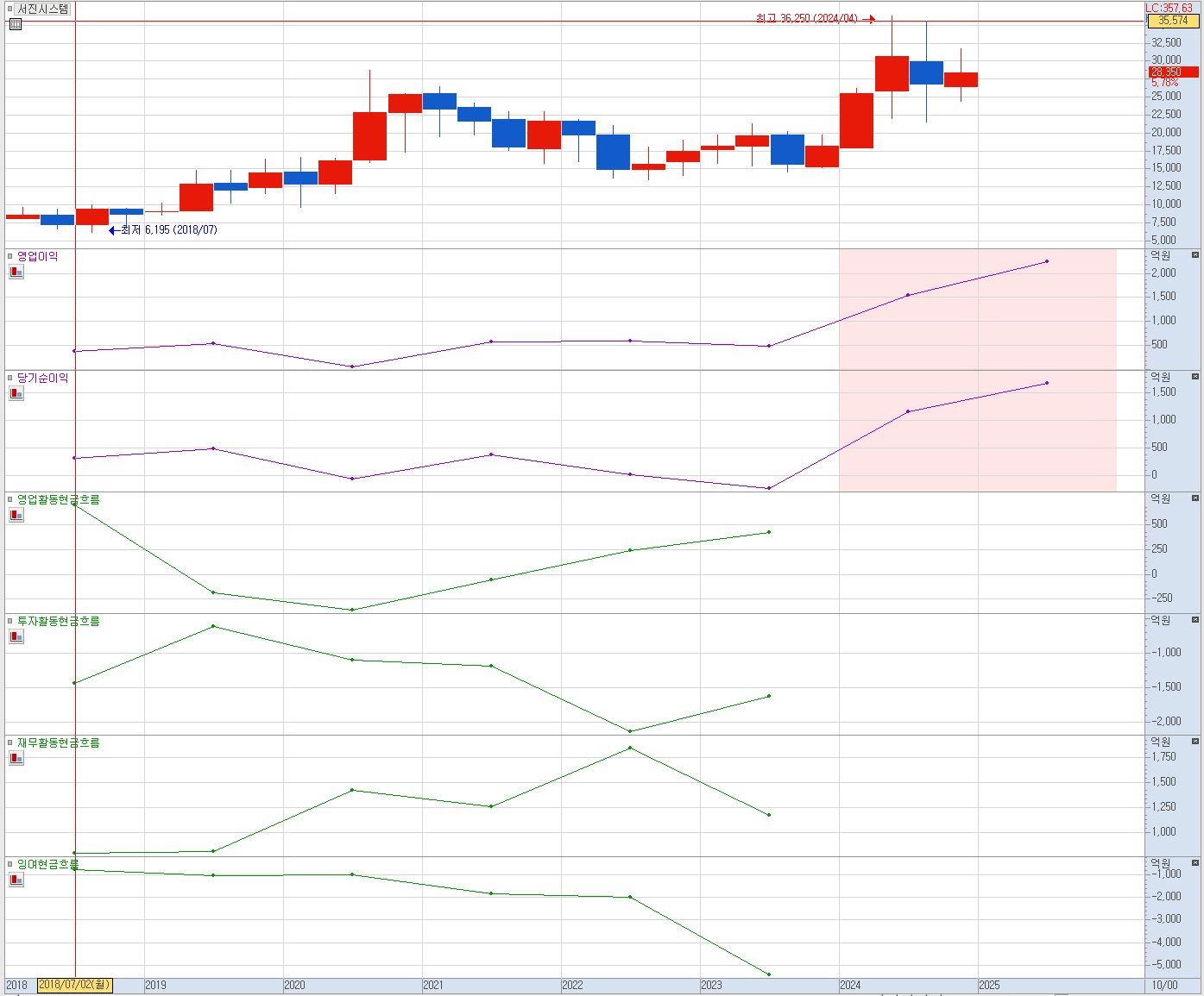 다시 키움의 HTS로 돌아와 서진시스템 재무차트를 살펴보면