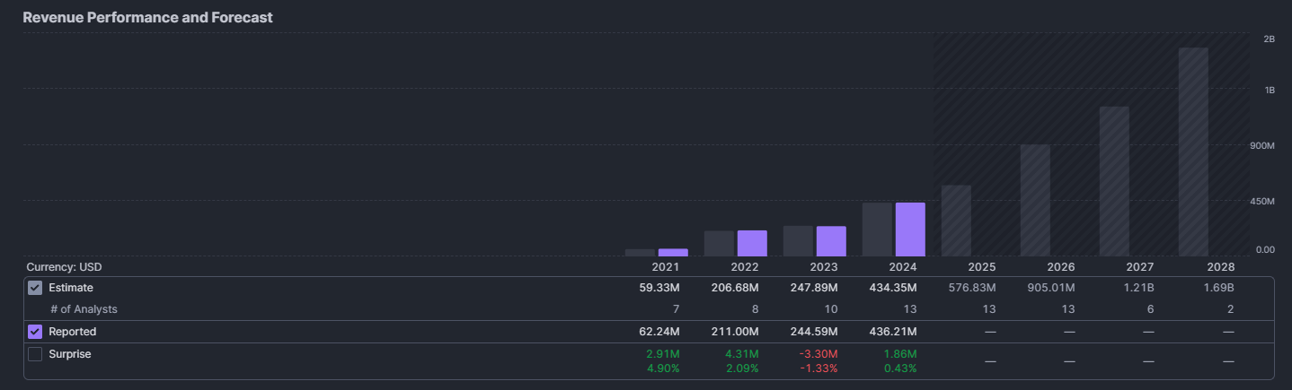 2025년도 PSR = $24.63 B/ $576.83M = 42배